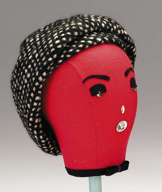 Mohair blend floppy beret-type winter hat in a bold black and white tweed, labeled "Boutique Guy Laroche Paris" and lined in silk.