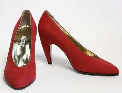 One in red suede and the other in navy blue suede with shiny polka dots. Both size 6 1/2, unworn.