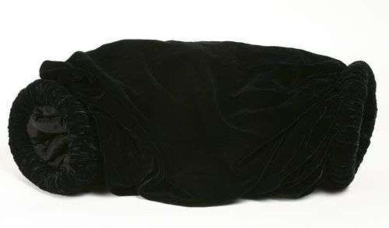 Long black velvet muff with an outside zip pocket, labeled "Hattie Carnegie Original."