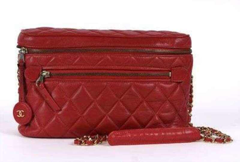 With a zip-around top opening and exterior zip pocket, long single chain and leather shoulder strap, leather interior embossed "Chanel" and "Made in Italy."