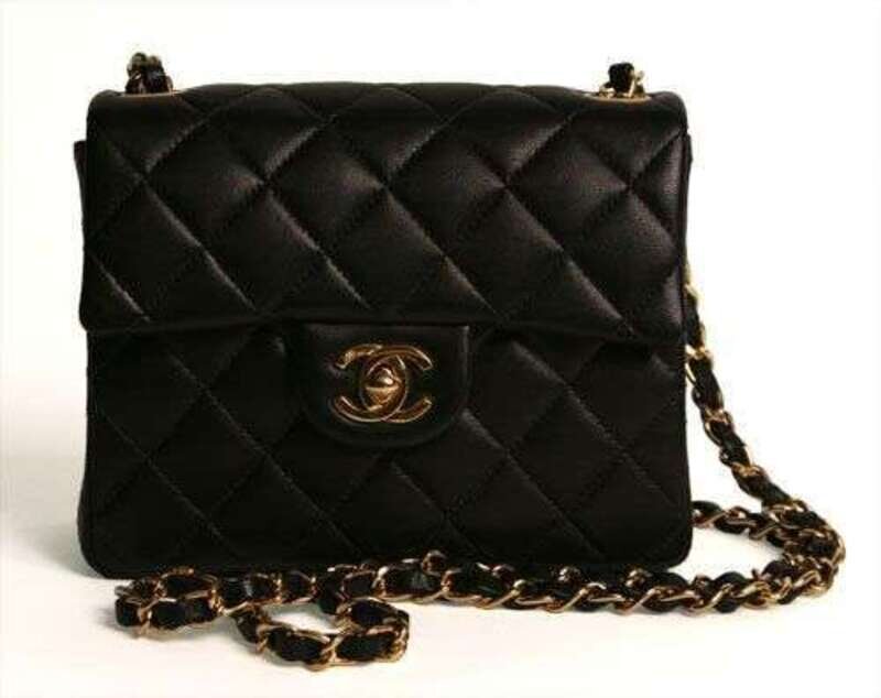 Black quilted kidskin with logo turn-lock closure on the flap front, with long chain handle, lined in burgundy leather and embossed "Chanel" and "Made in France" on the interior.