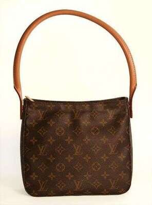 Monogram canvas with ultrasuede lining, natural calfskin structured top handle.