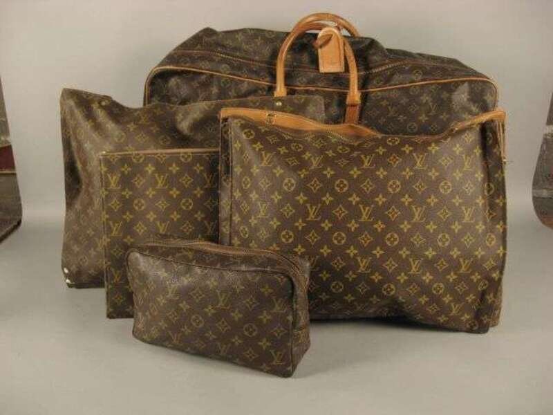 In signature canvas, approximately 27 x 19 x 8 1/2 inches, with leather trim and top handles, luggage tag, lined in white canvas twill. Together with a group of signature canvas travel accessories. Sold with all faults.