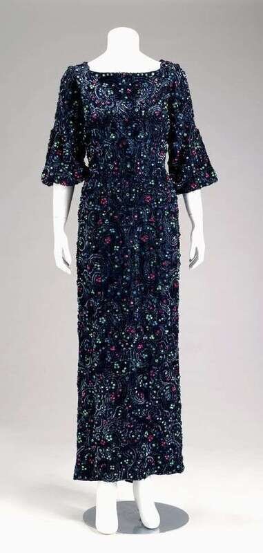 Gaby Espagne midnight blue rhinestone-encrusted gown 1970s