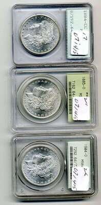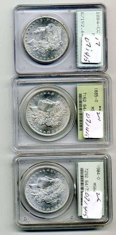 Together with 1885 O silver dollar PCGS MS-64 and 1884 CC silver dollar PCGS MS-64.