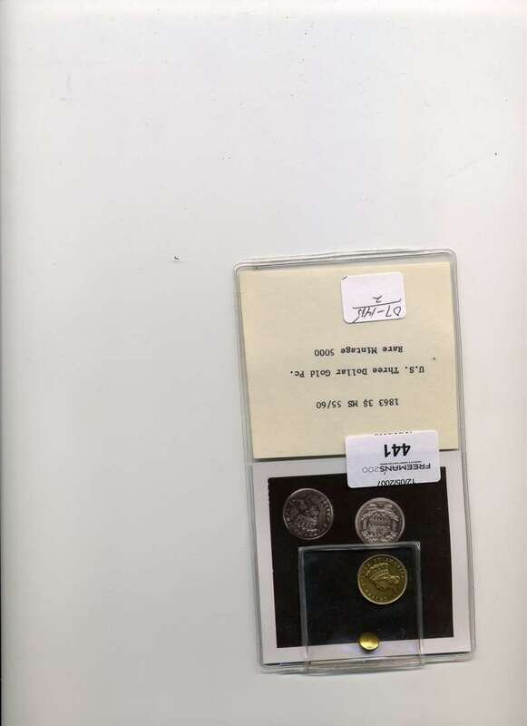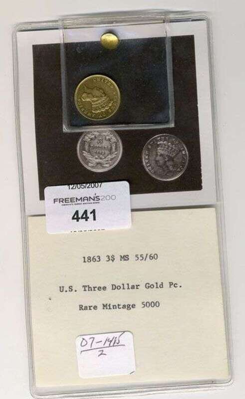 1863 three dollar U.S. gold MS-60