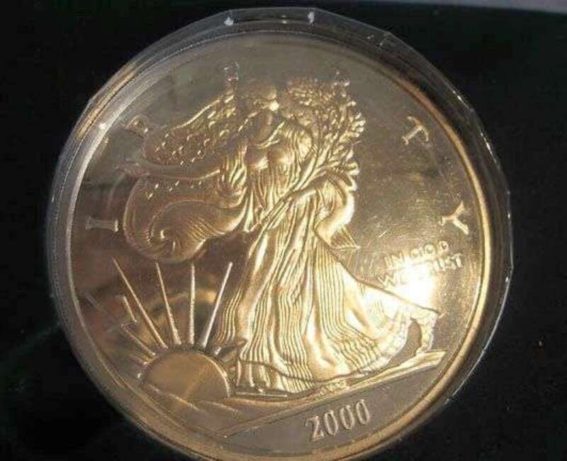 Five 'Washington Mint giant quarter pound silver eagles (two are gold plated), five silver Civil War tokens by the American Mint, one Dolly Madison silver dollar by the Washington Mint and five gold plated Ronald Reagan coins, 16 pieces