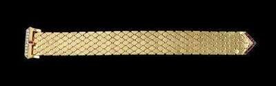 Wide yellow gold bracelet with a ruby and diamond clasp 1950s