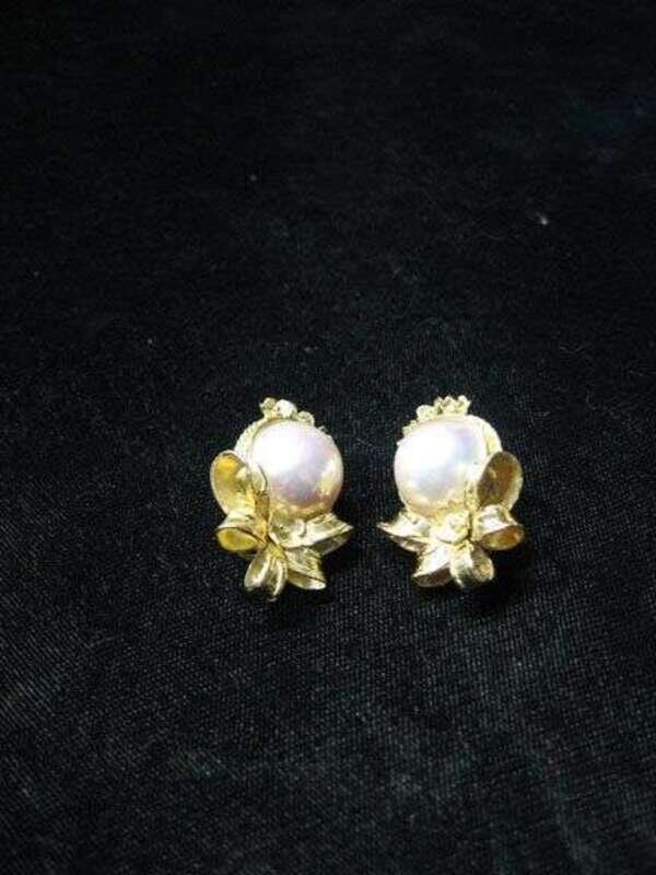 Approximately 15mm mabe pearls set into 14 karat yellow gold with flower garland form. Stamped "Italy", 750.