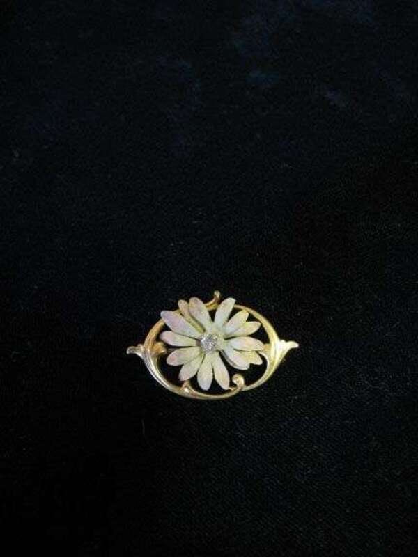 Daisy pin with gold border, diamond in center