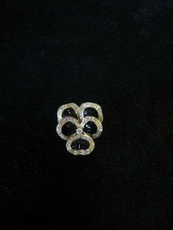 Black pansy pin, 14 karat yellow gold and minute round cut diamonds