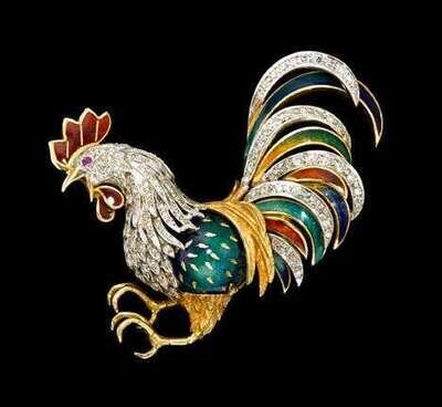 Diamond and enamel rooster brooch