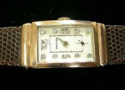 Gentleman's 14 karat yellow gold and diamond wristwatch, Hamilton 1930s
