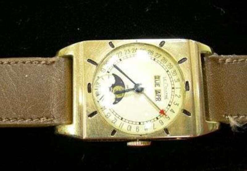Gentleman's 10 karat yellow gold filled calendar movement and moon phase wristwatch, LeCoultre 1930s