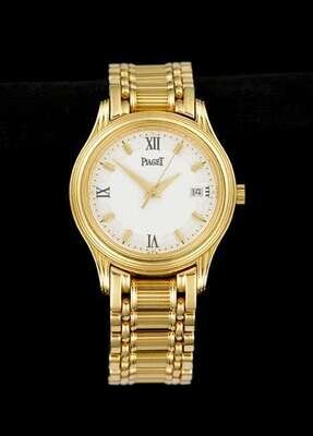 Lady's 14 karat yellow gold wristwatch and bracelet, Piaget 20th century