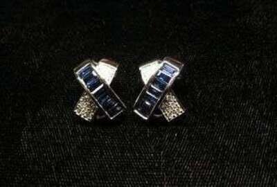 Sapphire and diamond "X" form earrings