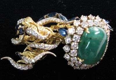 Unusual emerald brooch
