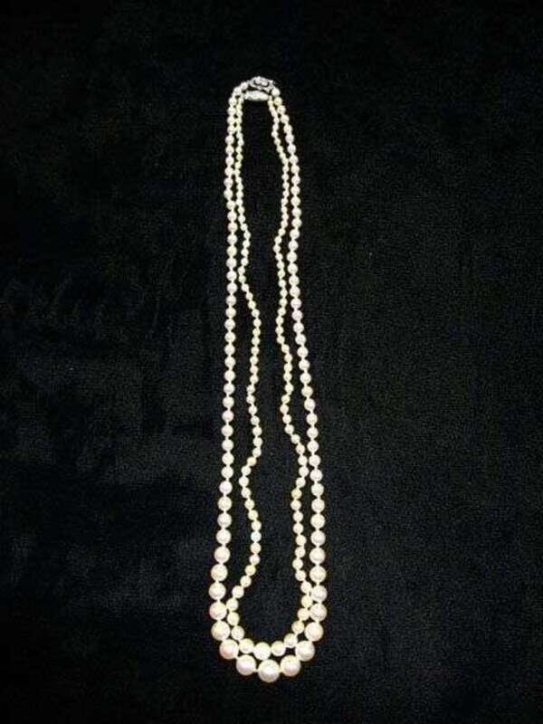 Two pearl necklaces with white gold and diamond clasps