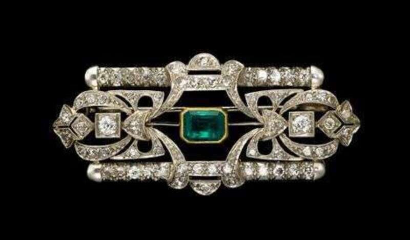 Emerald and diamond bar brooch