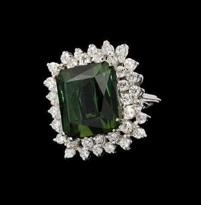 Impressive green tourmaline and diamond cluster ring