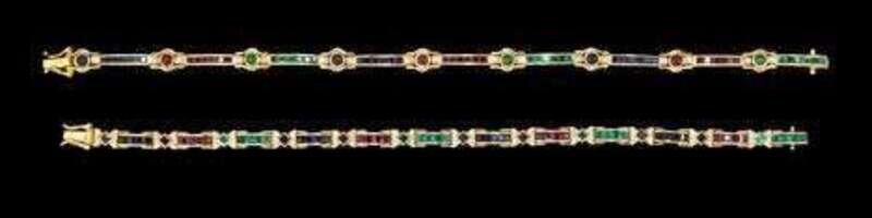 Each with a varient line style, having rubies, sapphires and emeralds with diamond accents.