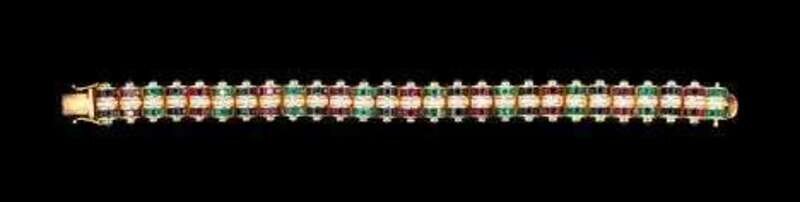 Ruby, emerald, sapphire and diamond flexible bracelet