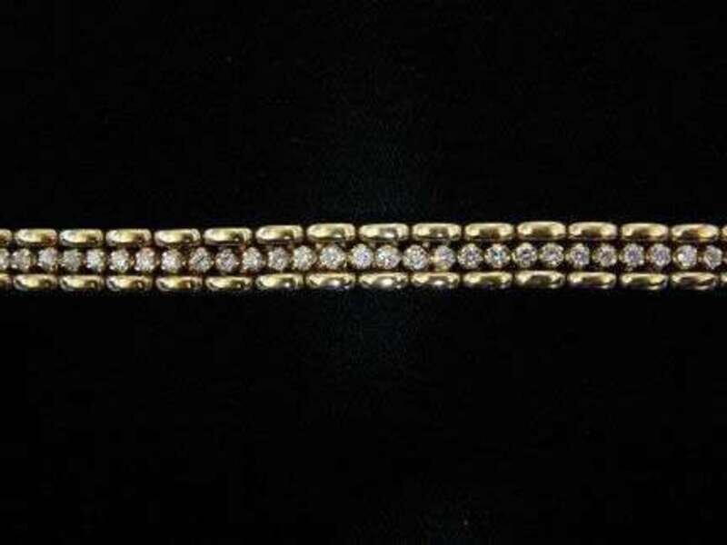Having a center row of forty-seven round diamonds with a total weight of approximatey 2.35 carats.