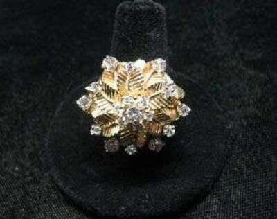Set with nineteen round cut diamonds, with a total of 1.5 carats set into 14 karat rose gold molded into a floral motif. Expandable "arthritas" ring shank.