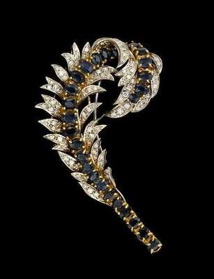 Sapphire and diamond feather brooch