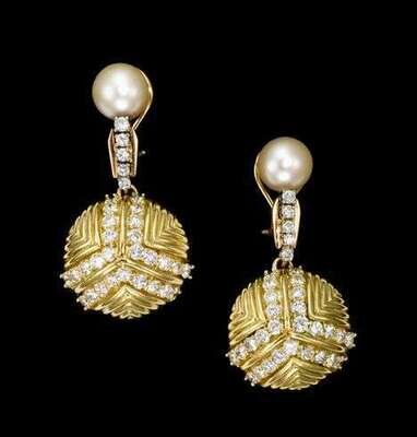 Pair of pearl and diamond earrings, Tiffany & Co.