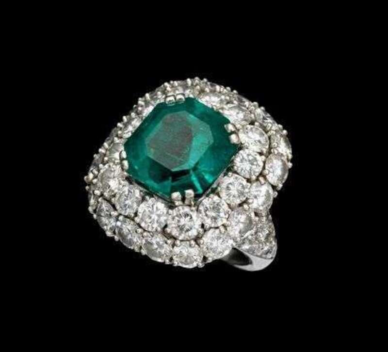 Platinum diamond and emerald ring