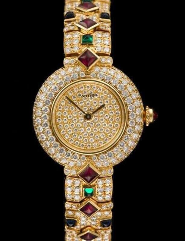 Rare and important Lady's diamond, sapphire, ruby, and emerald dress wristwatch, Cartier limited edition, st. petersburg collection, 1987-88