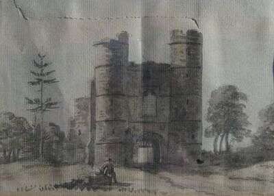 CIRCLE OF PAUL SANDBY (BRITISH 1725-1809) FIGURE BEFORE A RUINED GATE TOWER