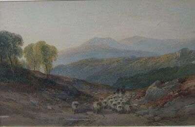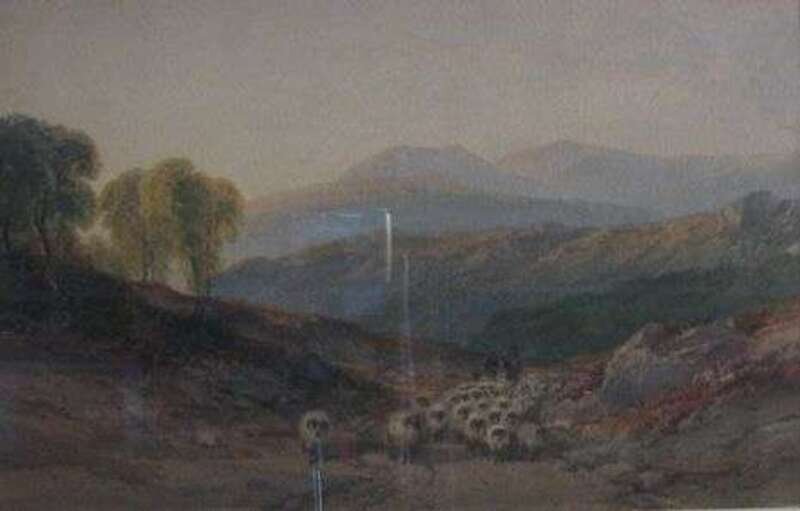 WILLIAM LEIGHTON LEITCH (BRITISH 1804-1883) A SHEPHERD WITH HIS FLOCK AT SUNSET