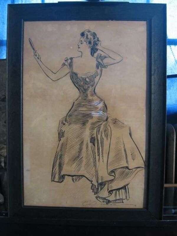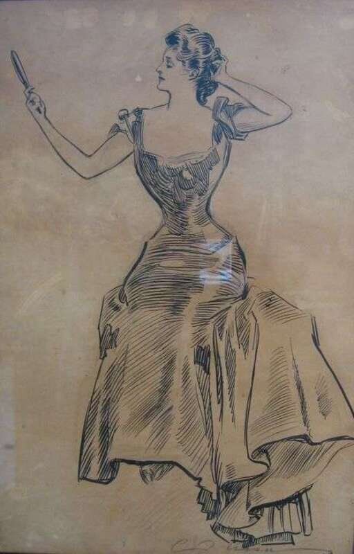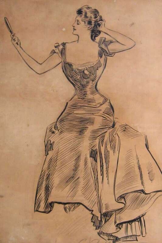 CHARLES DANA GIBSON (AMERICAN 1867-1944) WOMAN WITH MIRROR