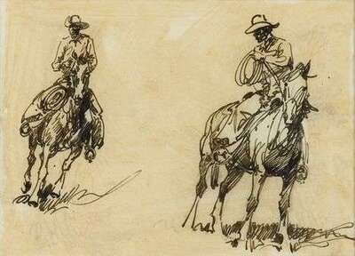 JOHN EDWARD BOREIN (AMERICAN 1873-1945) TWO COWBOYS ON HORSEBACK