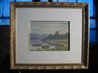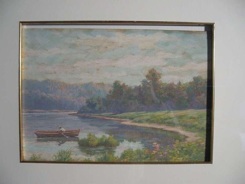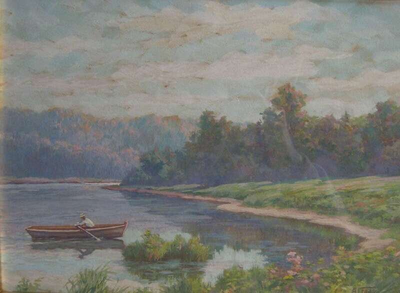 A*J* FAAS (AMERICAN 20TH CENTURY) LANDSCAPE WITH FIGURE ROWING