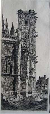JOHN TAYLOR ARMS (AMERICAN 1887-1953) "CATHEDRAL OF SAINT CYR AND SAINTE JULITTA, NEVERS"