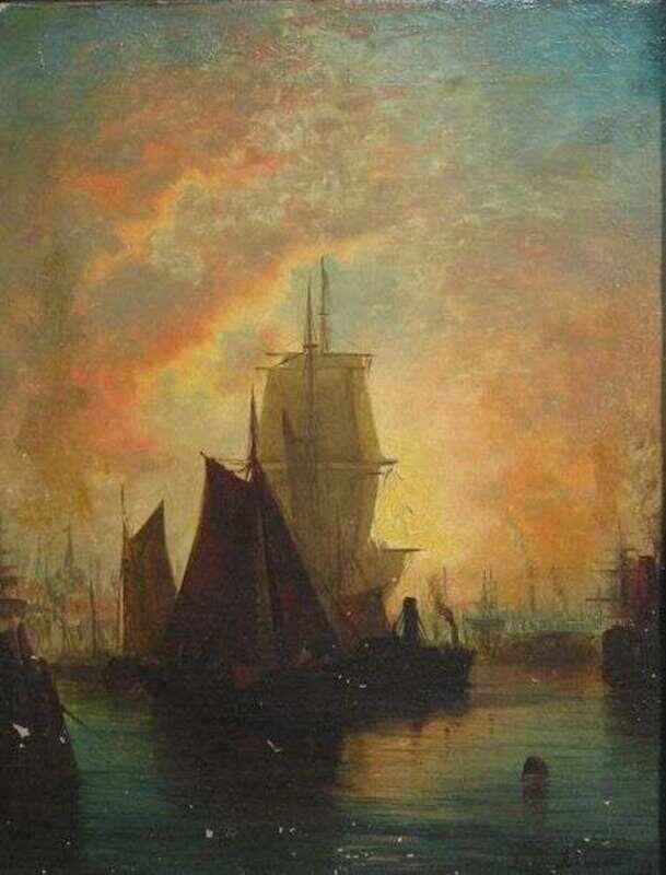 J.D. MA*RAUGHT (CONTINENTAL SCHOOL 19TH CENTURY) HARBOR VIEW AT SUNSET
