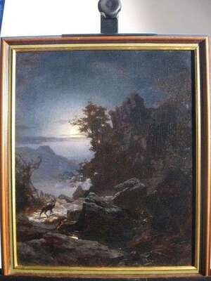 OLAF***** (GERMAN SCHOOL, 19TH CENTURY) NIGHT LANDSCAPE WITH BUCK