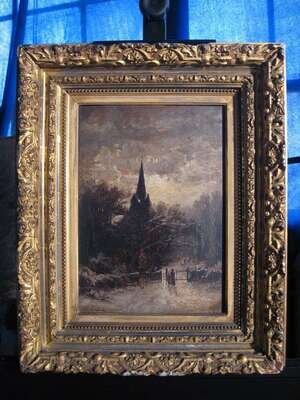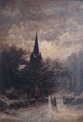 THOMAS B. ****** (CONTINENTAL 19TH CENTURY) WINTER EVENING AT THE CHURCH GATE