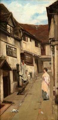 ATTRIBUTED TO J. KNOX FERGUSON (BRITISH 19TH CENTURY) STREET SCENE WITH FIGURES, ST. IVES CORNWALL