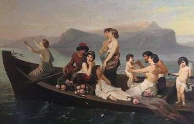 CONTINENTAL SCHOOL (19TH CENTURY) WOMEN AND CHILDREN IN BOAT (ALLEGORY OF LOVE AND FAMILY)