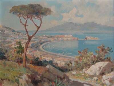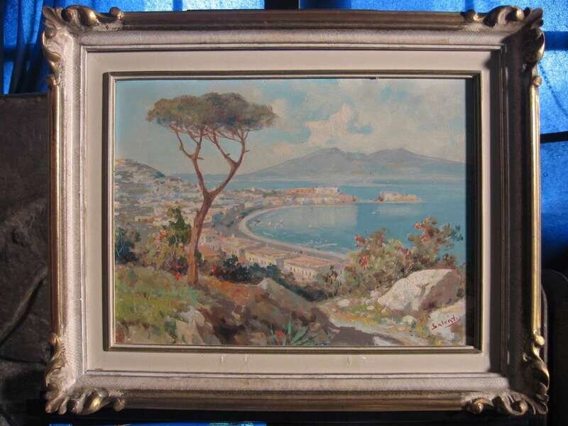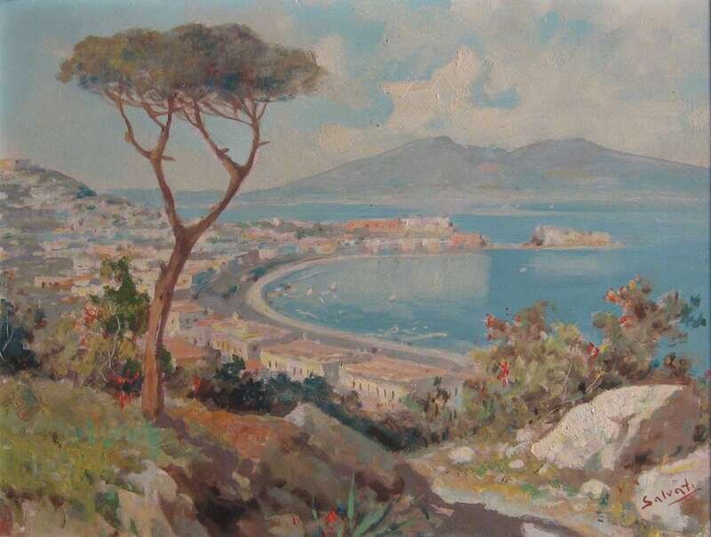 G* SALVATI (ITALIAN 20TH CENTURY) CAPRI HARBOR SCENE WITH MOUNTAIN IN DISTANCE