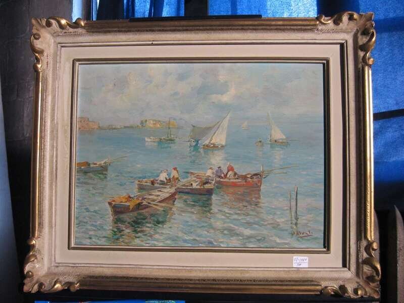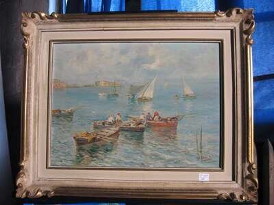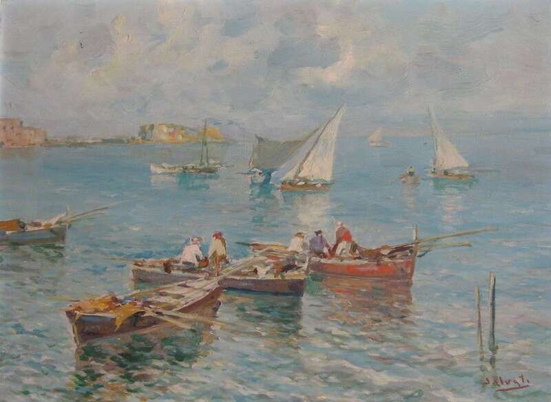 G* SALVATI (ITALIAN 20TH CENTURY) HARBOR SCENE.