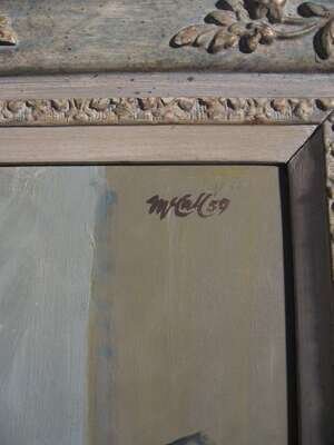 Signed and dated "59" upper right, oil on masonite