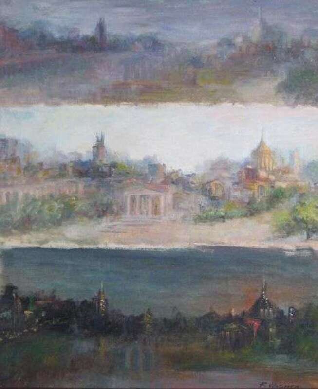 FREDERICK R. WAGNER (AMERICAN 1864-1940) PANORAMIC VIEWS OF PHILADELPHIA (TRIPTYCH)