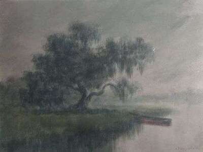 ALEXANDER JOHN DRYSDALE (AMERICAN 1870-1934) MISTY SCENE OF TREE IN THE BAYOU