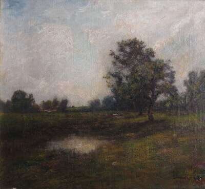 EDWARD B. GAY (AMERICAN 1837-1928) LANDSCAPE WITH COW