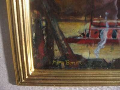 MARY CABLE BUTLER (AMERICAN 1865-1946) INDUSTRIAL SCENE WITH TUGBOAT